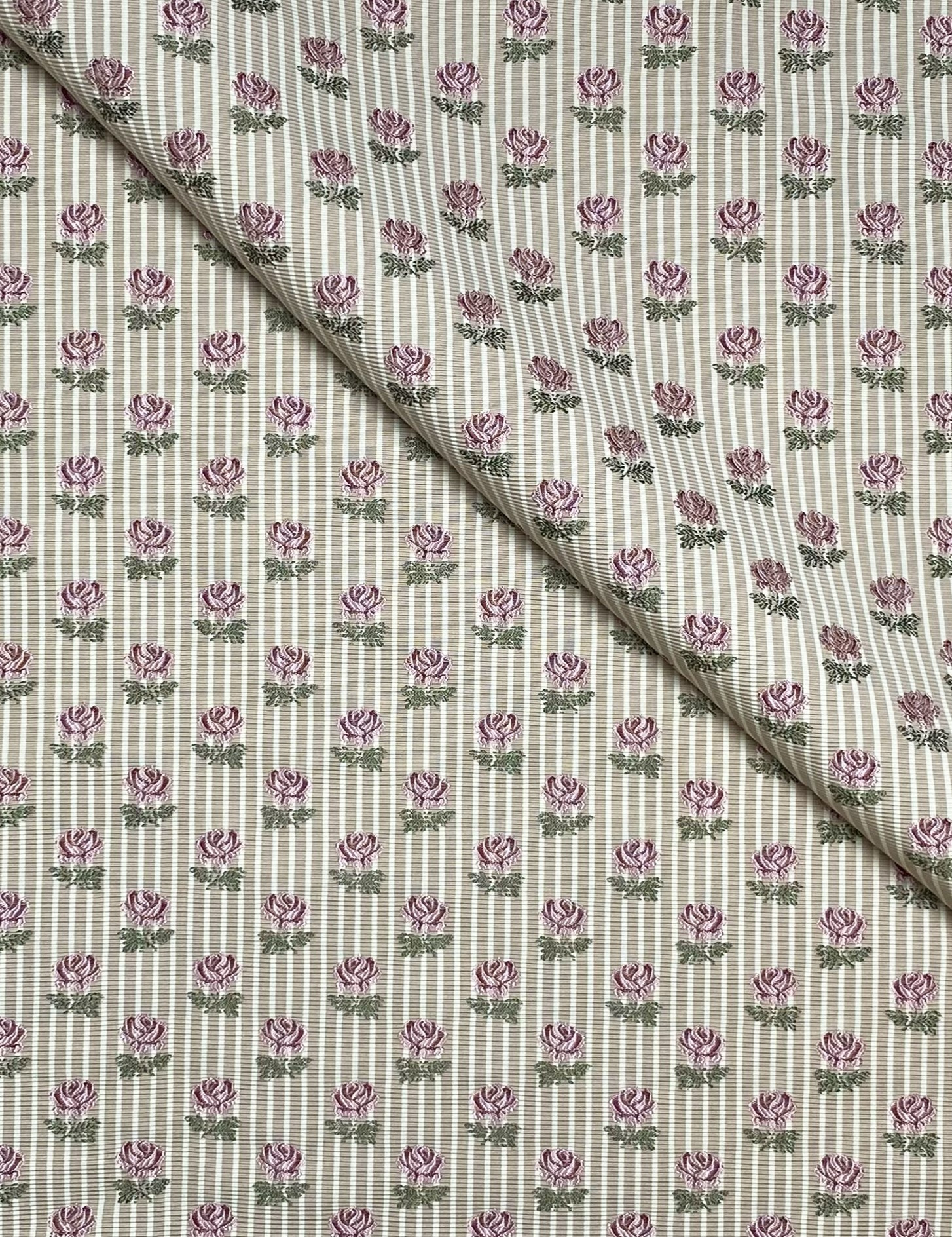 Tout en équilibre, EXQUISE associe la rigueur de la rayure ottomane à la douceur d'un semis floral. Les petites fleurs, rythmées surdes bandes colorées, insufflent une touche de fantaisie à ce tissu au raffinement joyeux, tissé dans la manufacture Lelièvre.