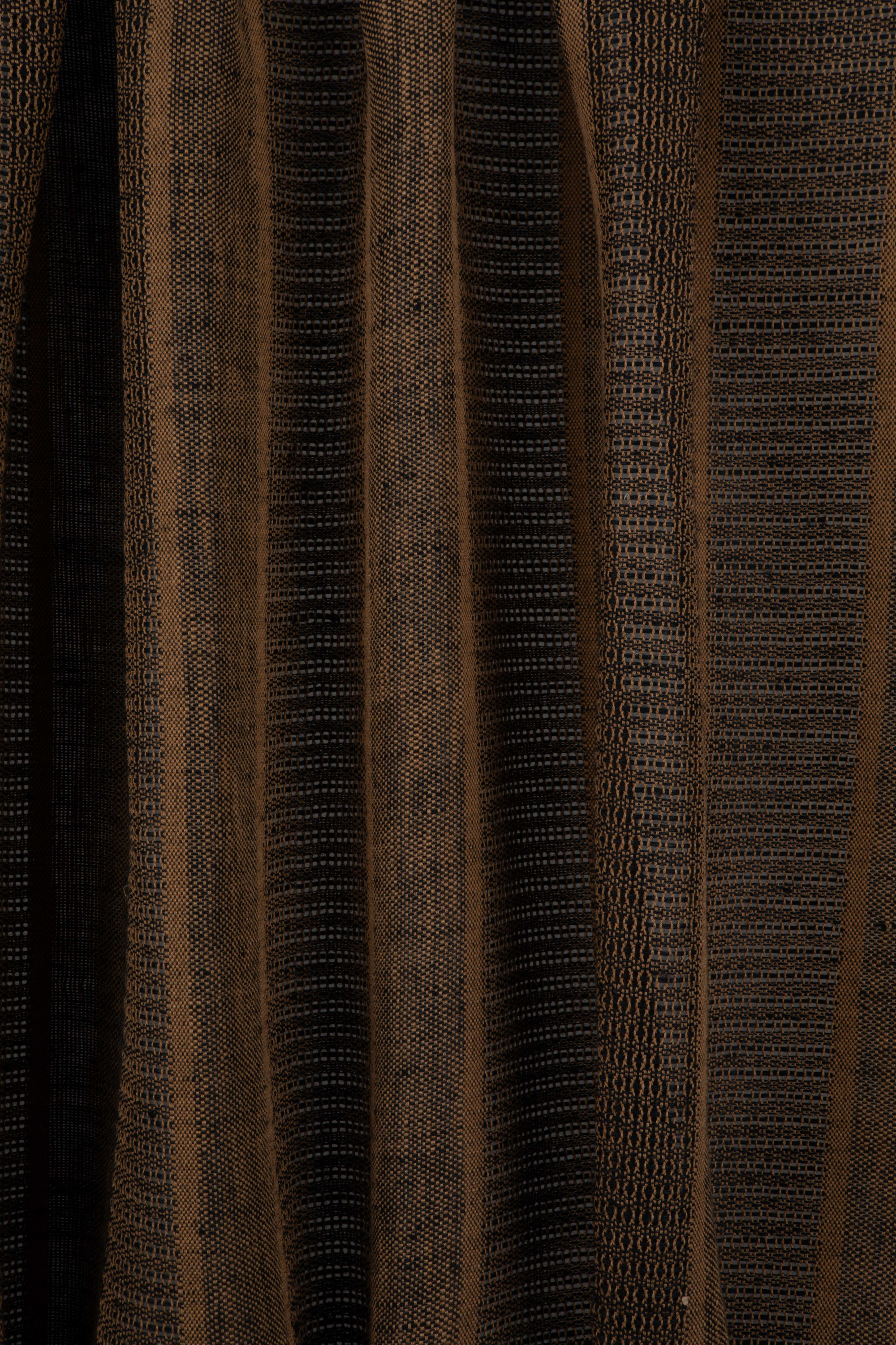 Un voilage semi-opaque au charme artisanal. Le fil de jute, ajouré et graphique, compose des rayures verticales qui filtrent la lumière avec délicatesse. ZÉNITH traduit la verticalité et la force du soleil à son apogée.