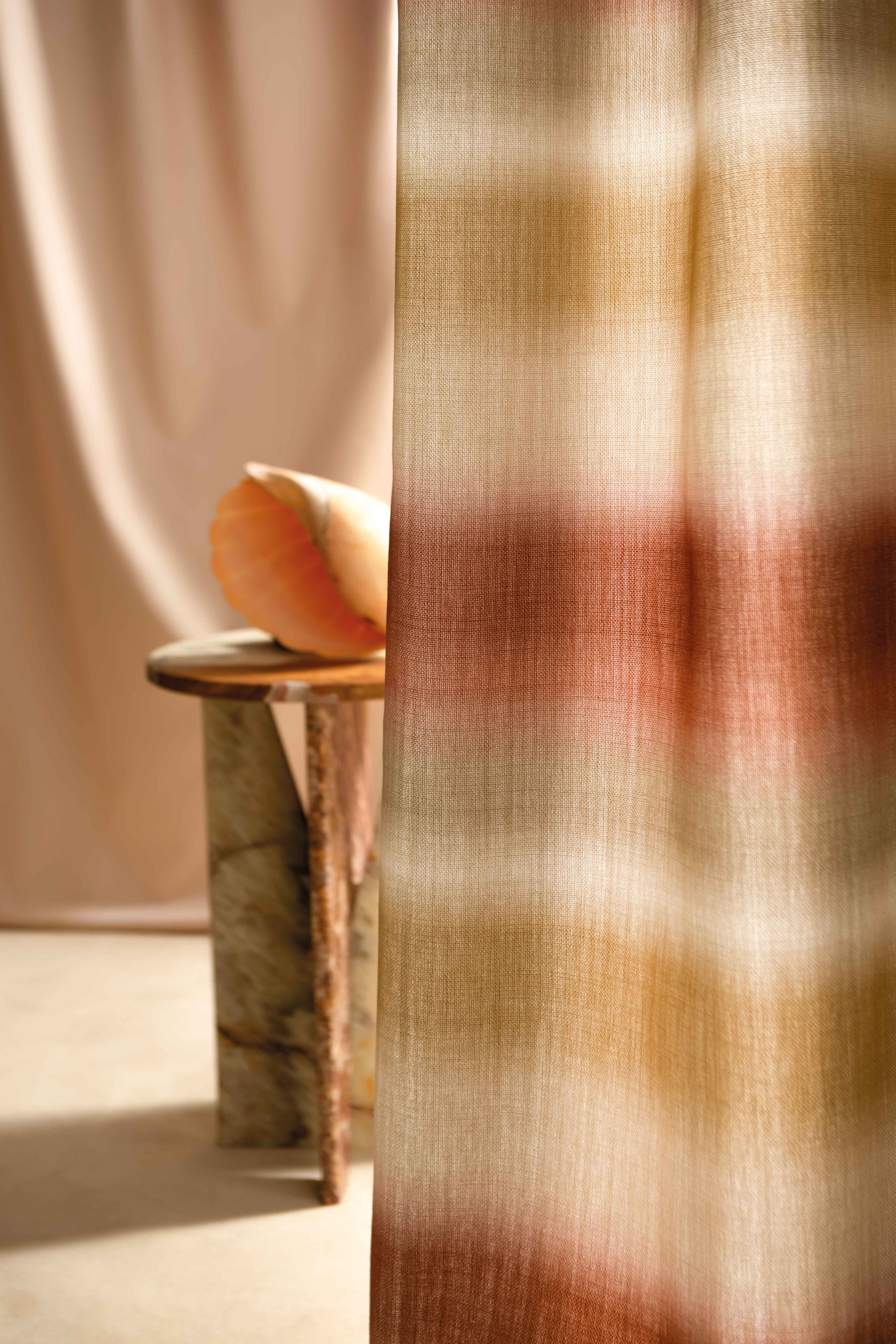 With its gradations of colour and evocation of the sun, HALO, a 100% cotton double-width print, reflects the subtle changes in the colours of the sky and the flow of light throughout the day. In its flamboyant, verdant shades, we find the enveloping warmth of summer, but also the crisp cold of winter.