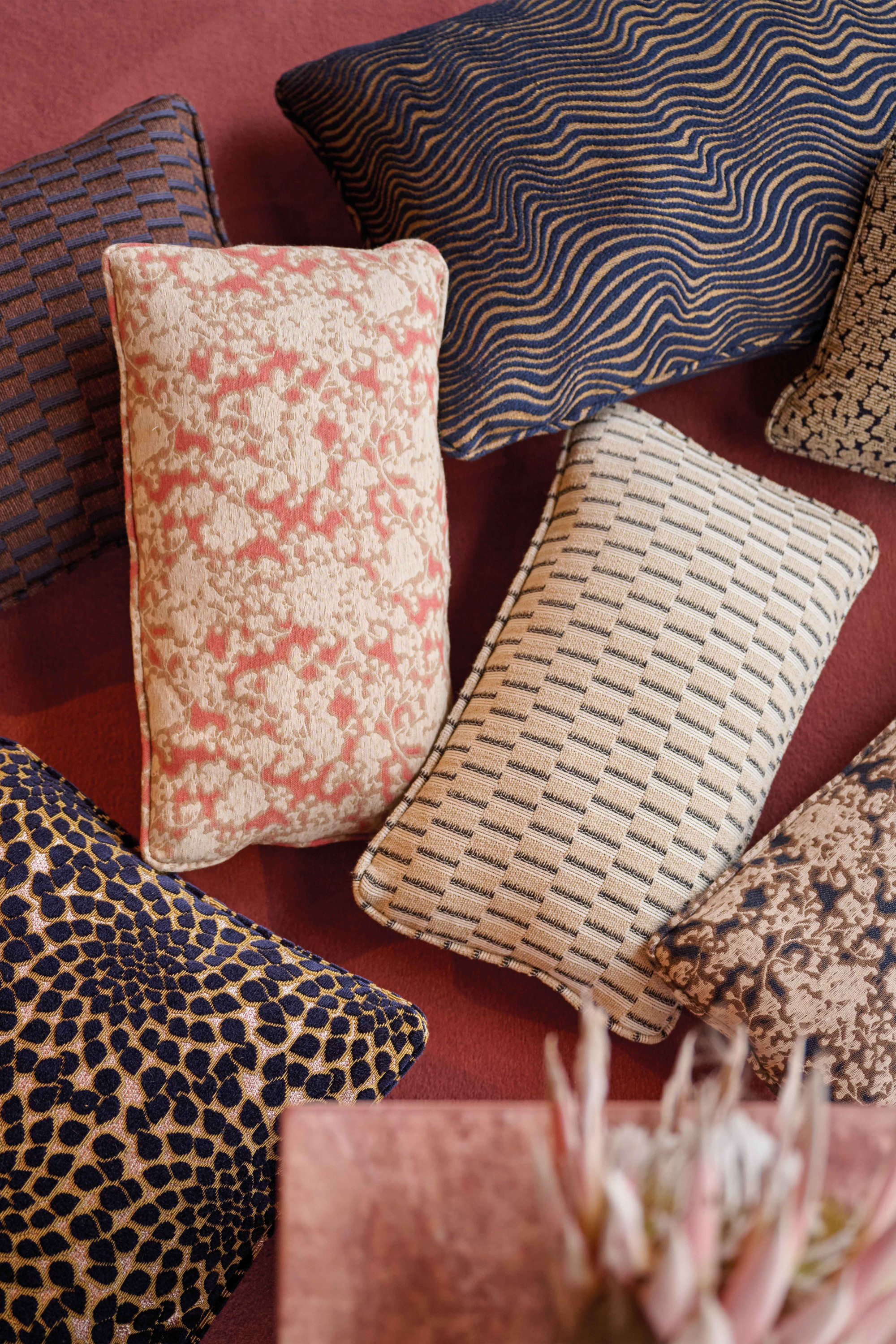 ROC is a small structured pattern that reveals the beauty of the layers in a split stone. Its play of coloured gradients gives the fabric a mineral depth. Each colourway evokes the organic shades of rock shaped by time.