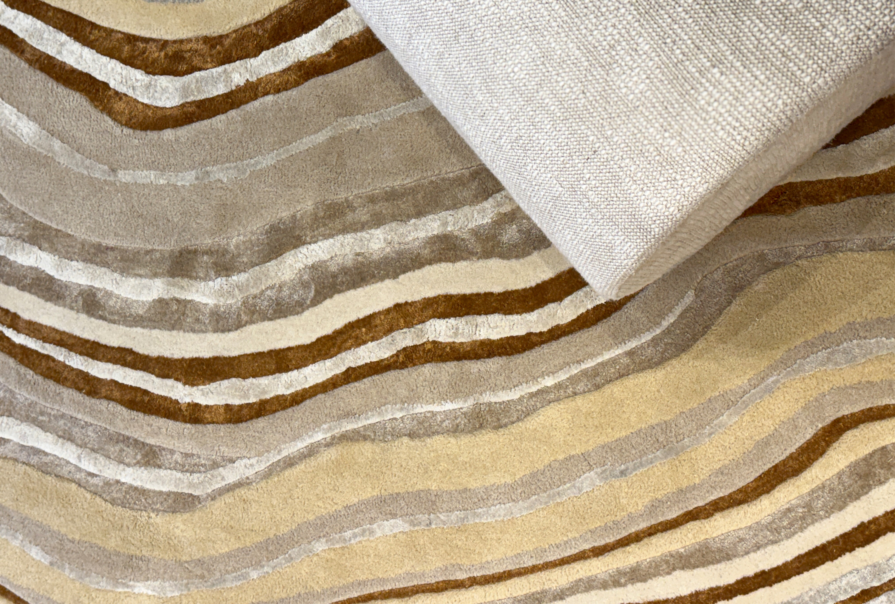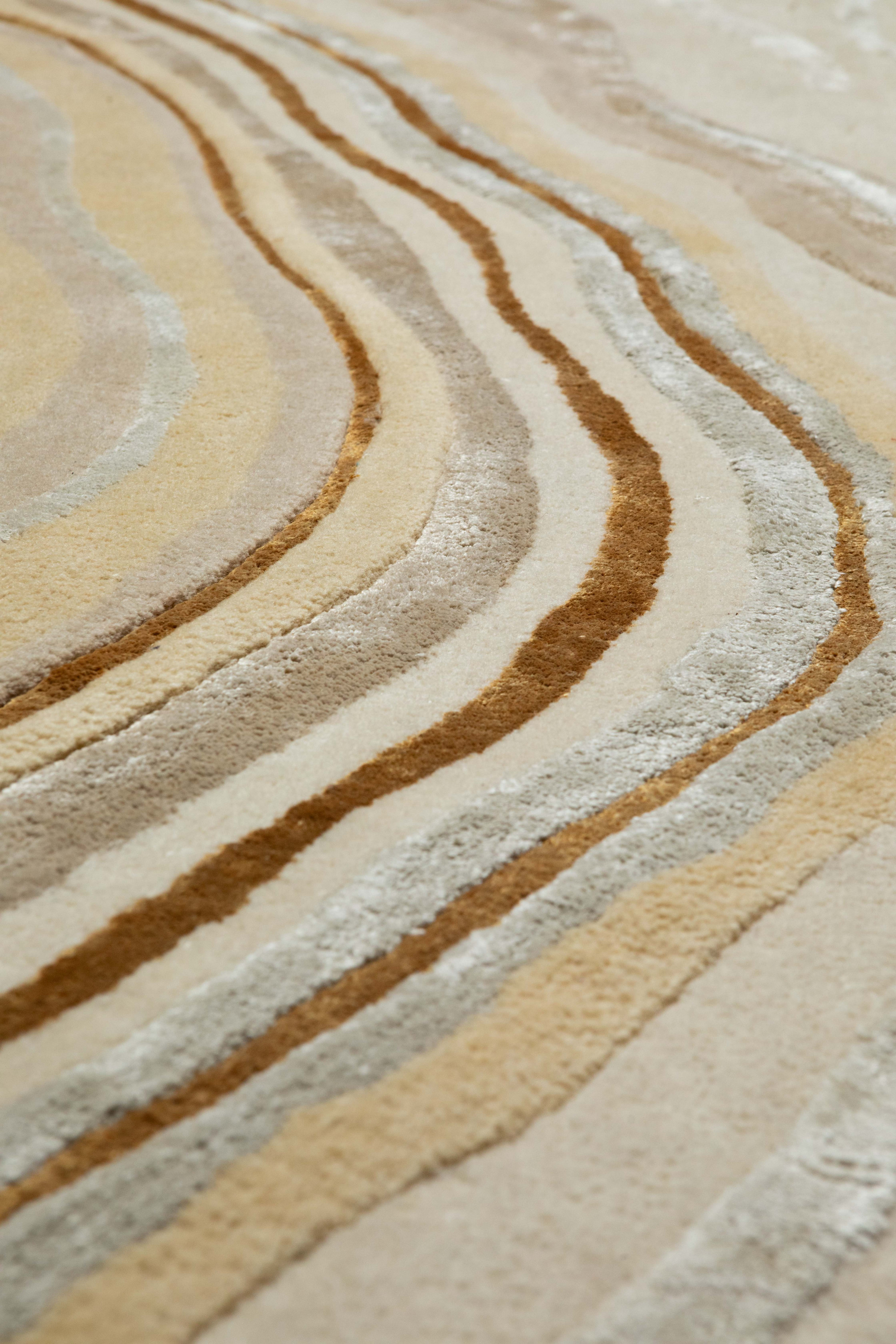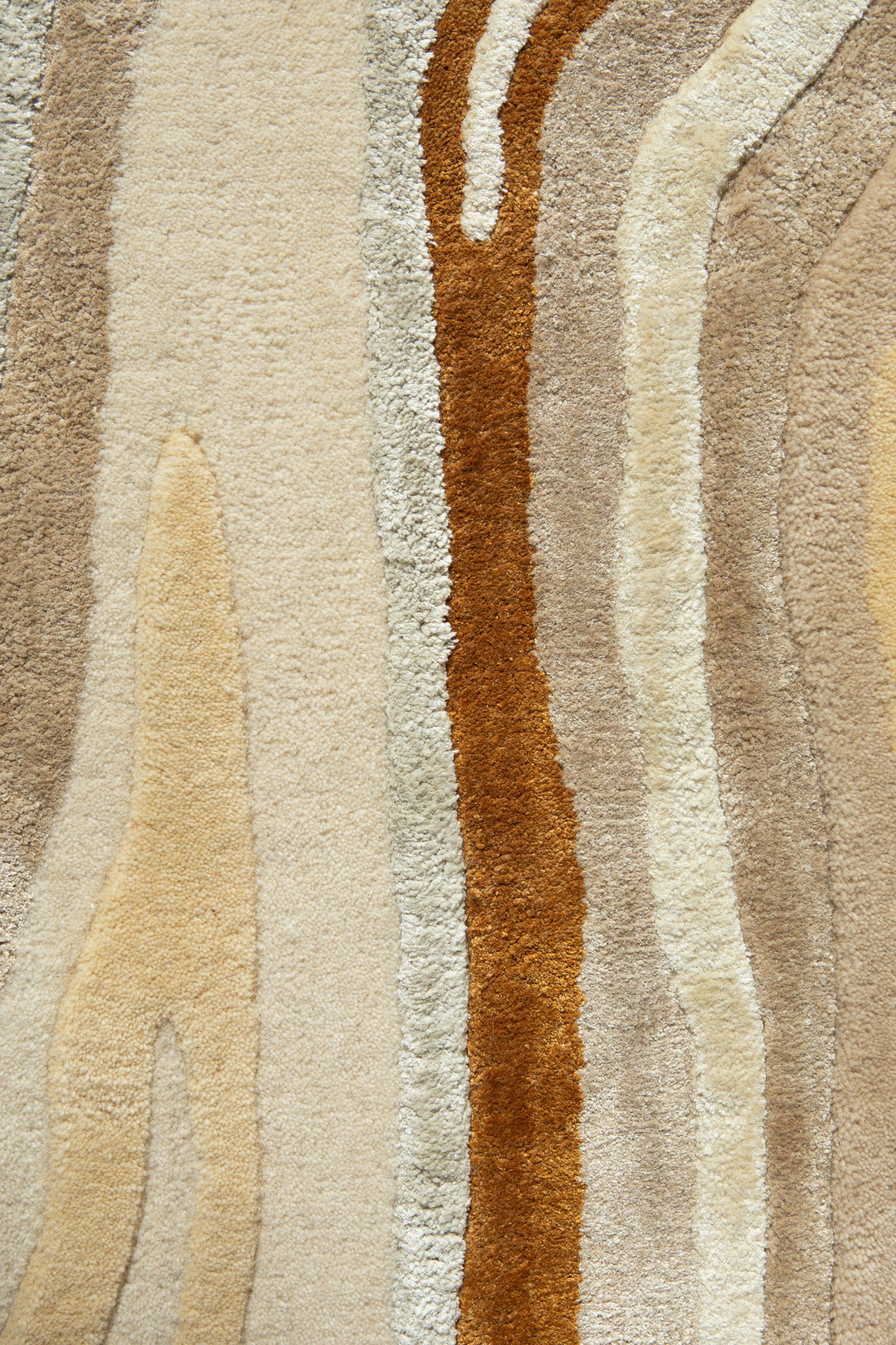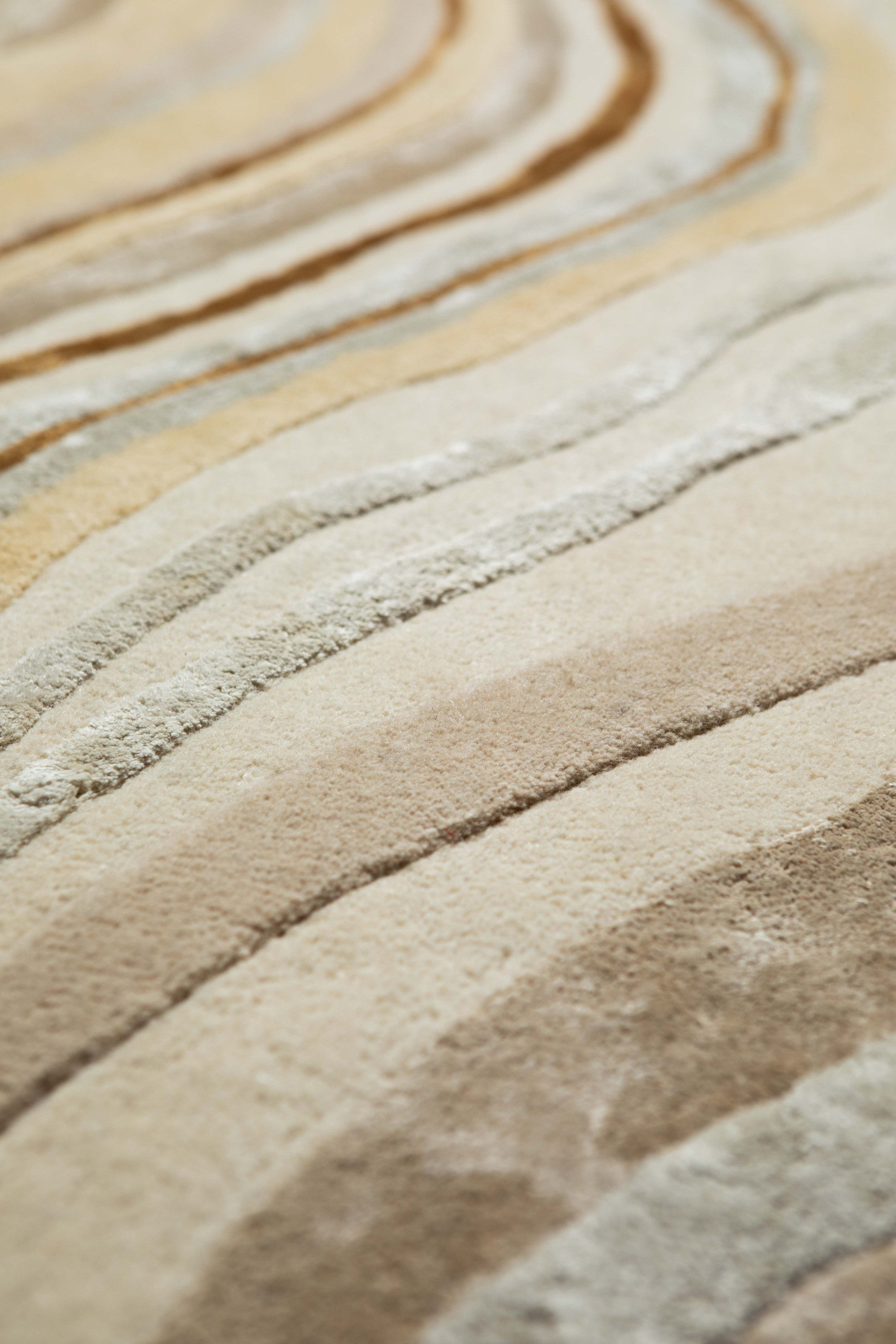 Inspired by the marble quarries of Carrara in Italy, ONDARA, a hand-tufted rug, pays tribute to the purity and rarity of these floors. The warmth of wool is accentuated by subtle, luminous veining in plant-based silk (Tencel), following an irregular rhythm. The simplicity of the pattern and the interplay of materials give this precious material its full grandeur.