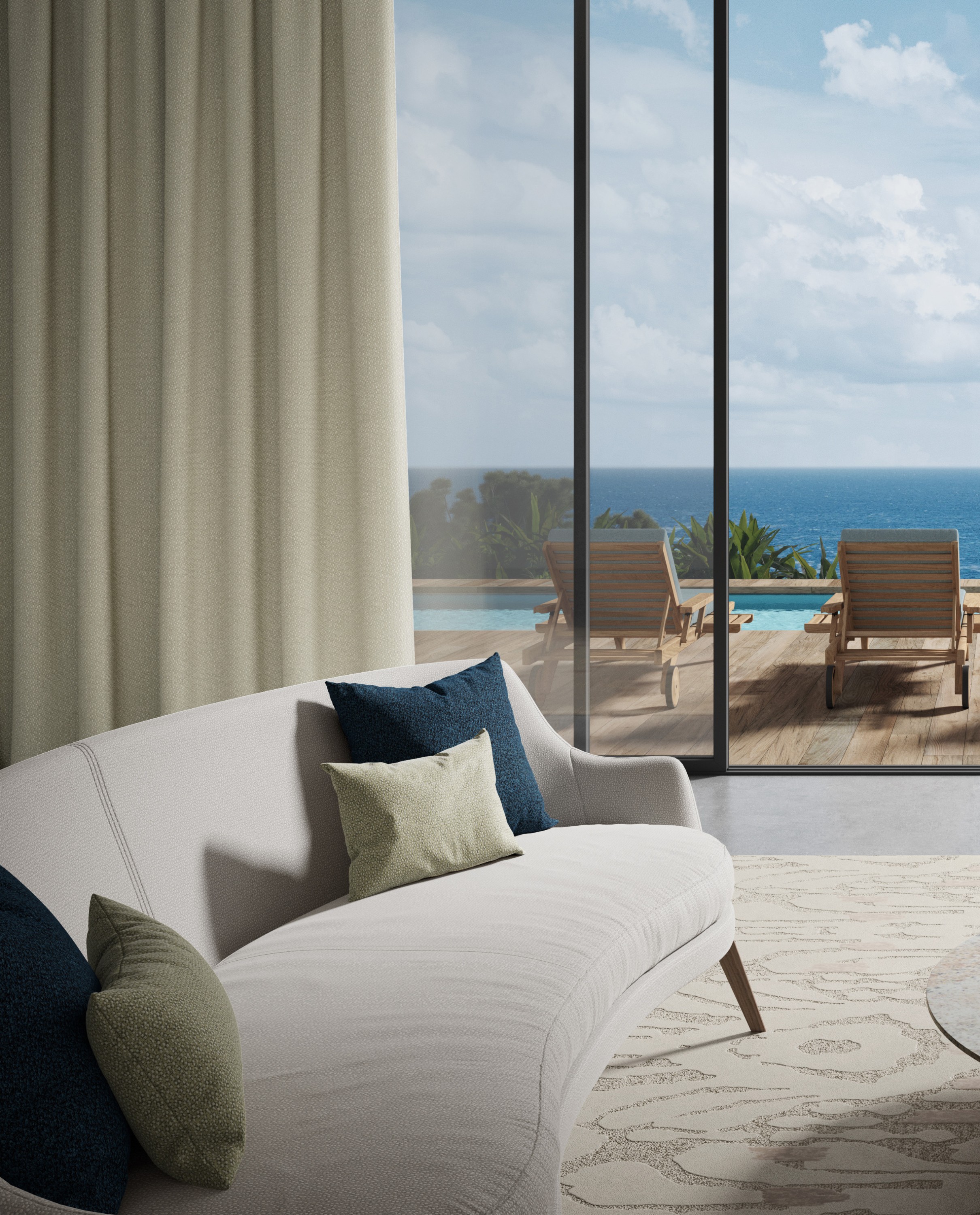 Pensé d'abord pour les canapés, Farniente est un tissu bouclette, très texturé, d'un effet laine et d'une belle main, à la fois douce et assez lourde, aux qualités hydrofuges.