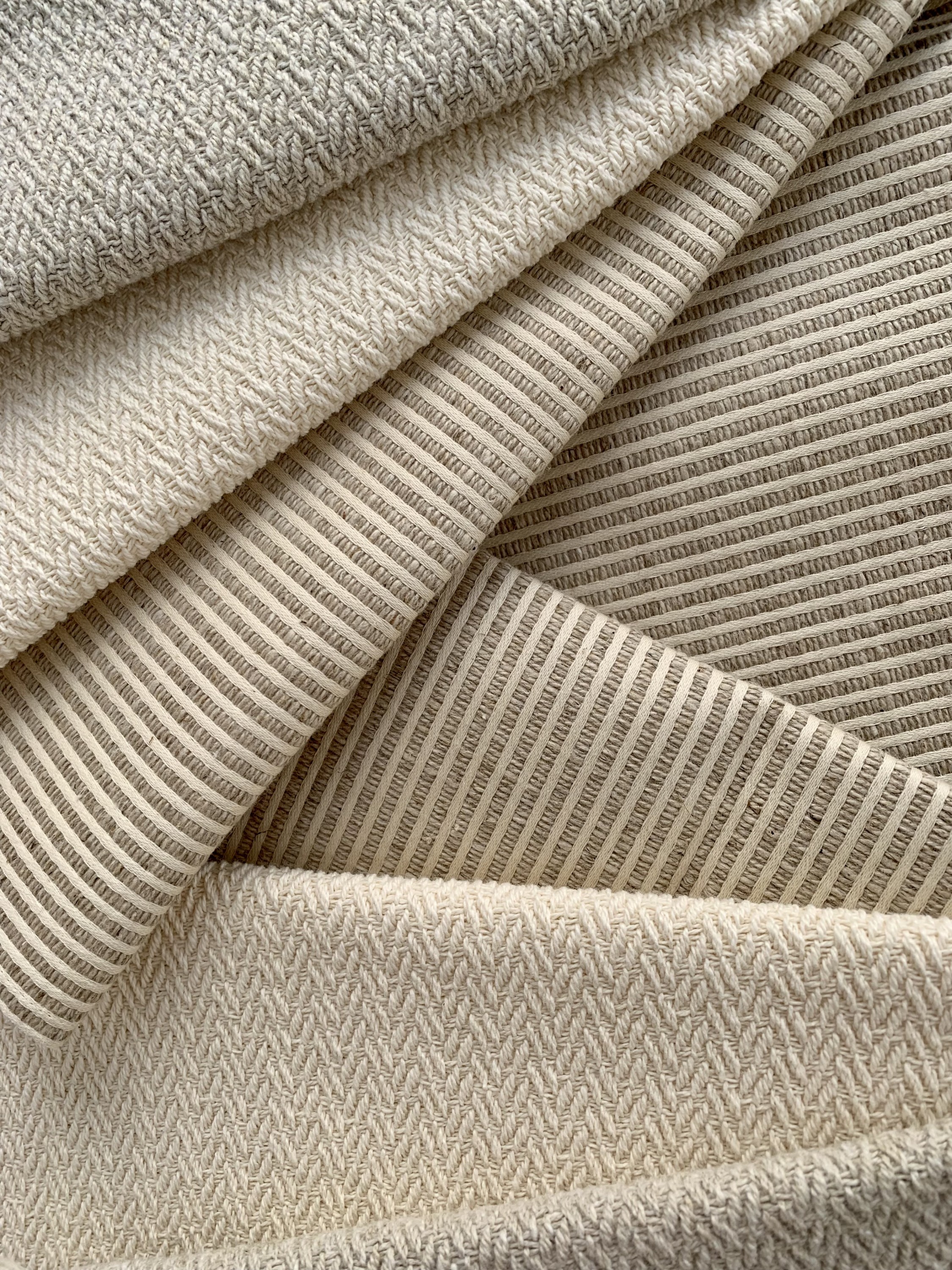 Des certifications durables et des mix matières démontrent la démarche éco-responsable de Lelièvre, où l'on retrouve pour certaines étoffes des mélanges de lin, de coton et de laine.
