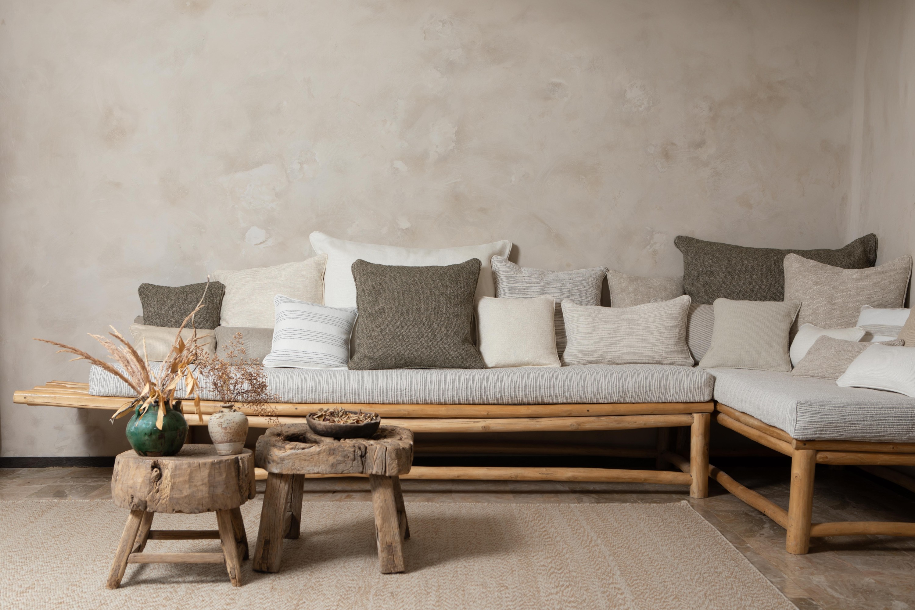 Trois étoffes font parfaitement écho aux enjeux circulaires soulevés par 100% Naturel : FORSYTHIA, HÉVÉA ET ÉPICÉA, composées à 100%de coton labellisé GRS - Global Recycled Standard - qui garantit des textiles composés avec un minimum de 50% de fibres recyclées. Une volonté pour Lelièvre de réduire la consommation de matières premières vierges et l'impact environnemental de ses produits. Proposés en deux couleurs (ficelle et écru), chaque tissu est décliné en trois dessins : chevron, rayures et un grain plus ample.