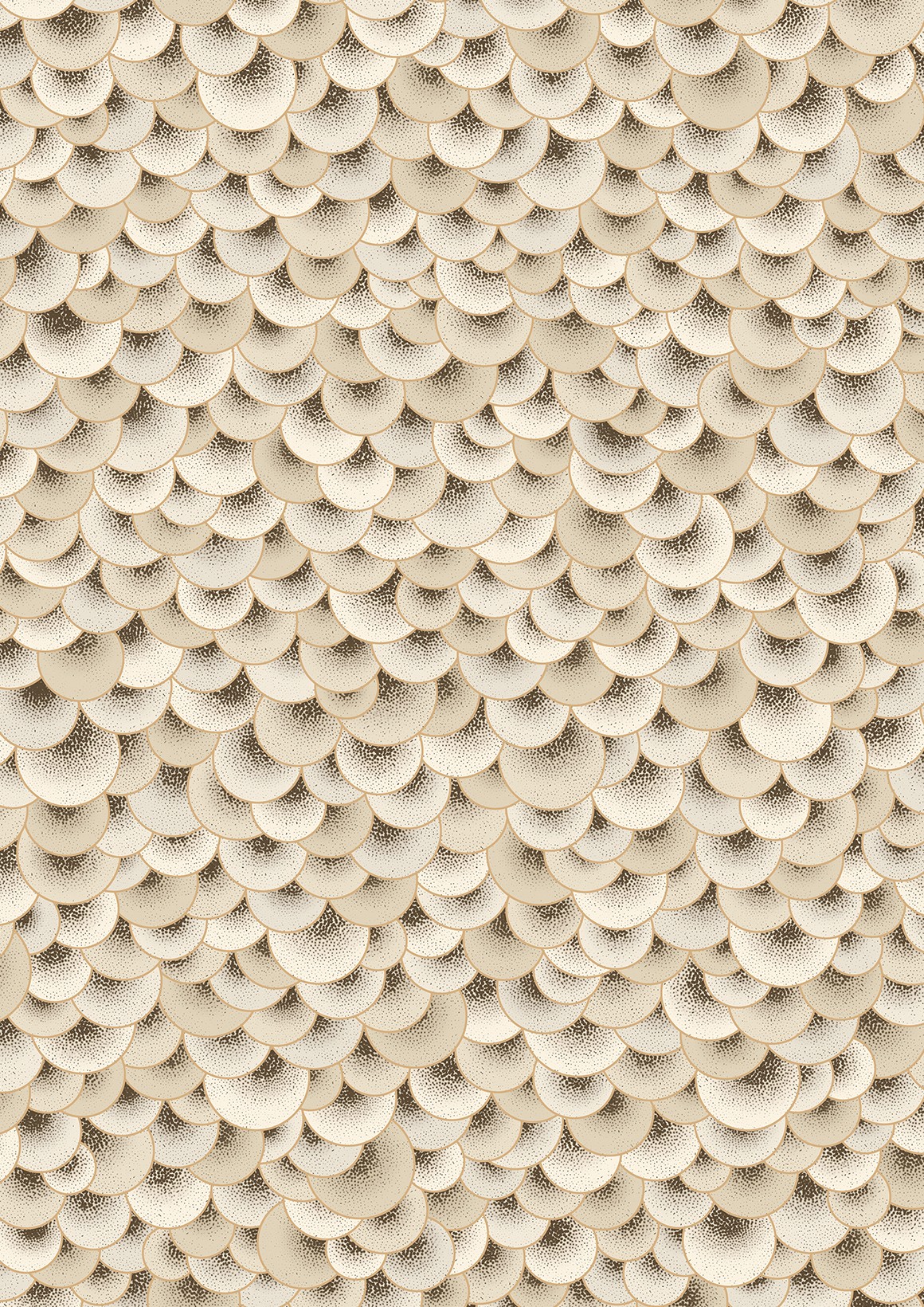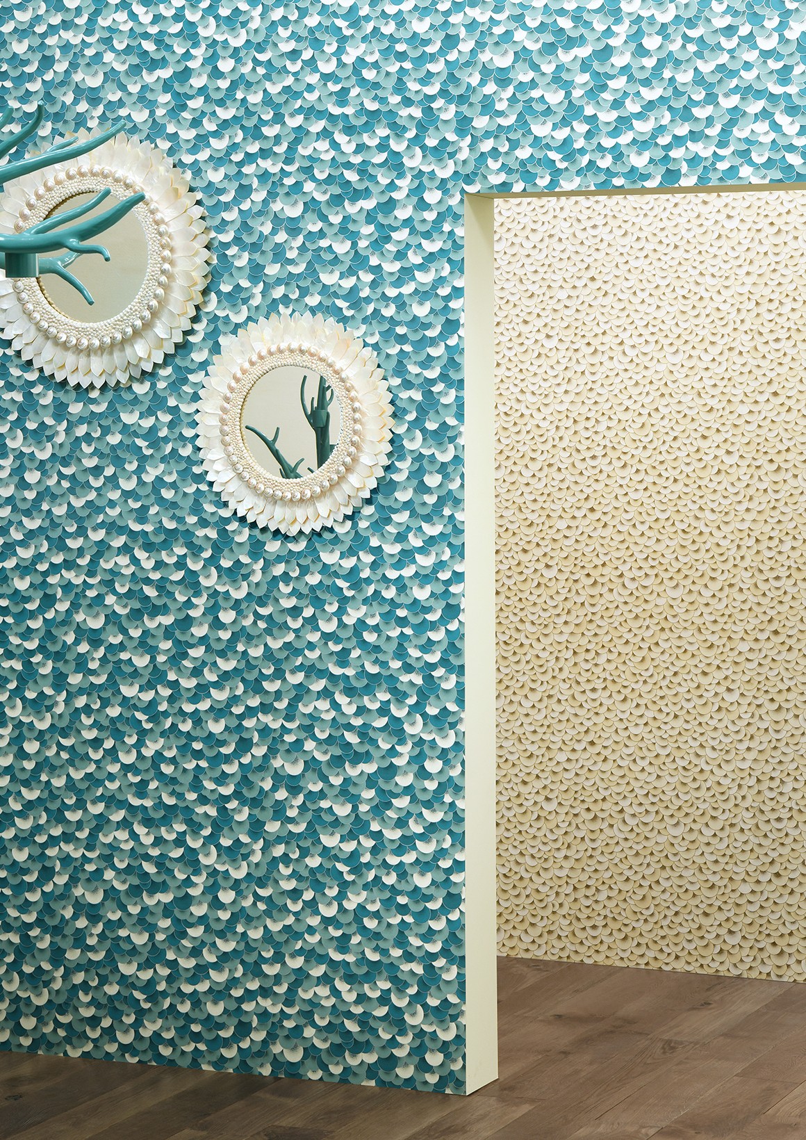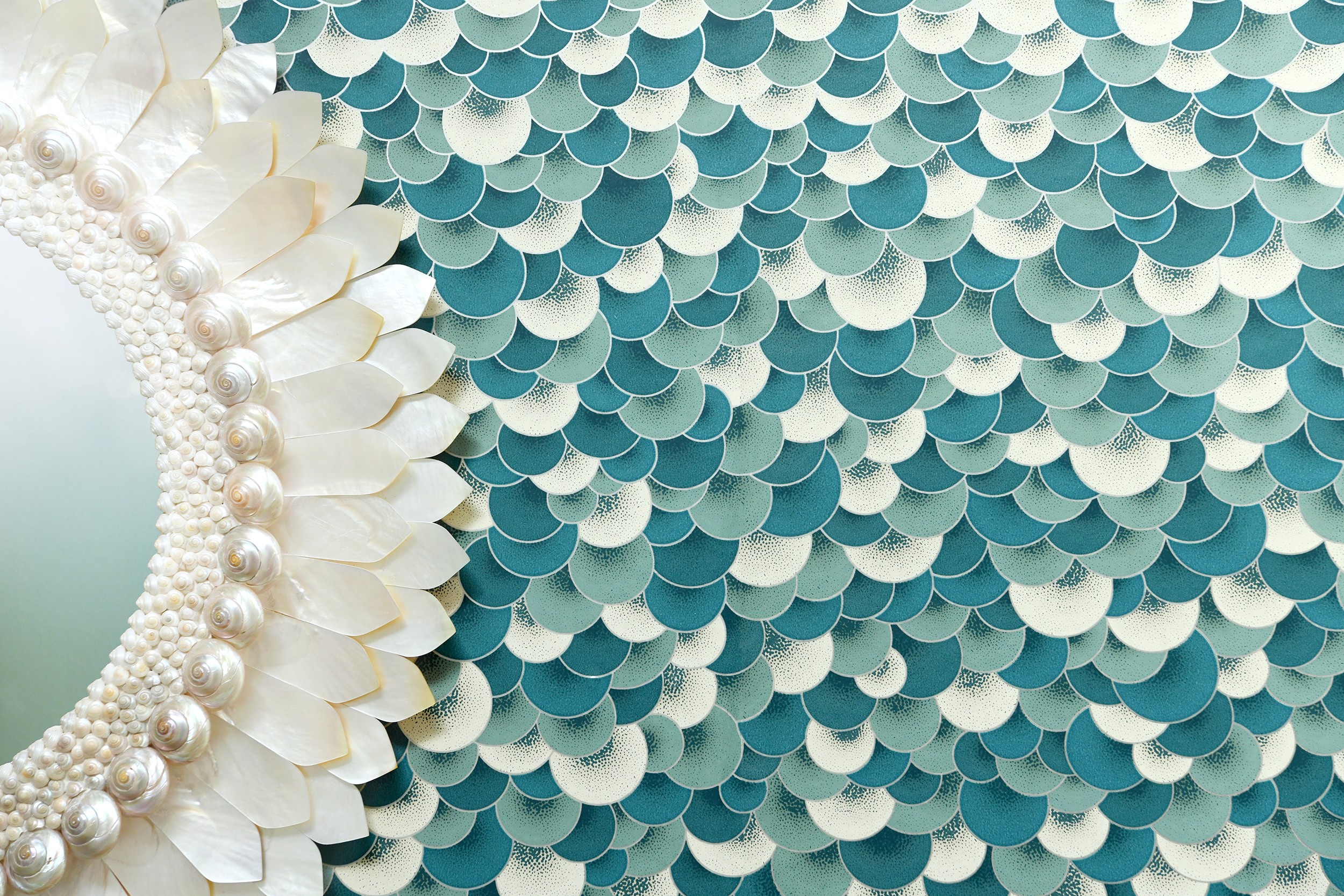 Des écailles serties par un filet métallique qui évoque la nacre, dans des couleurs d océans ou de sables.