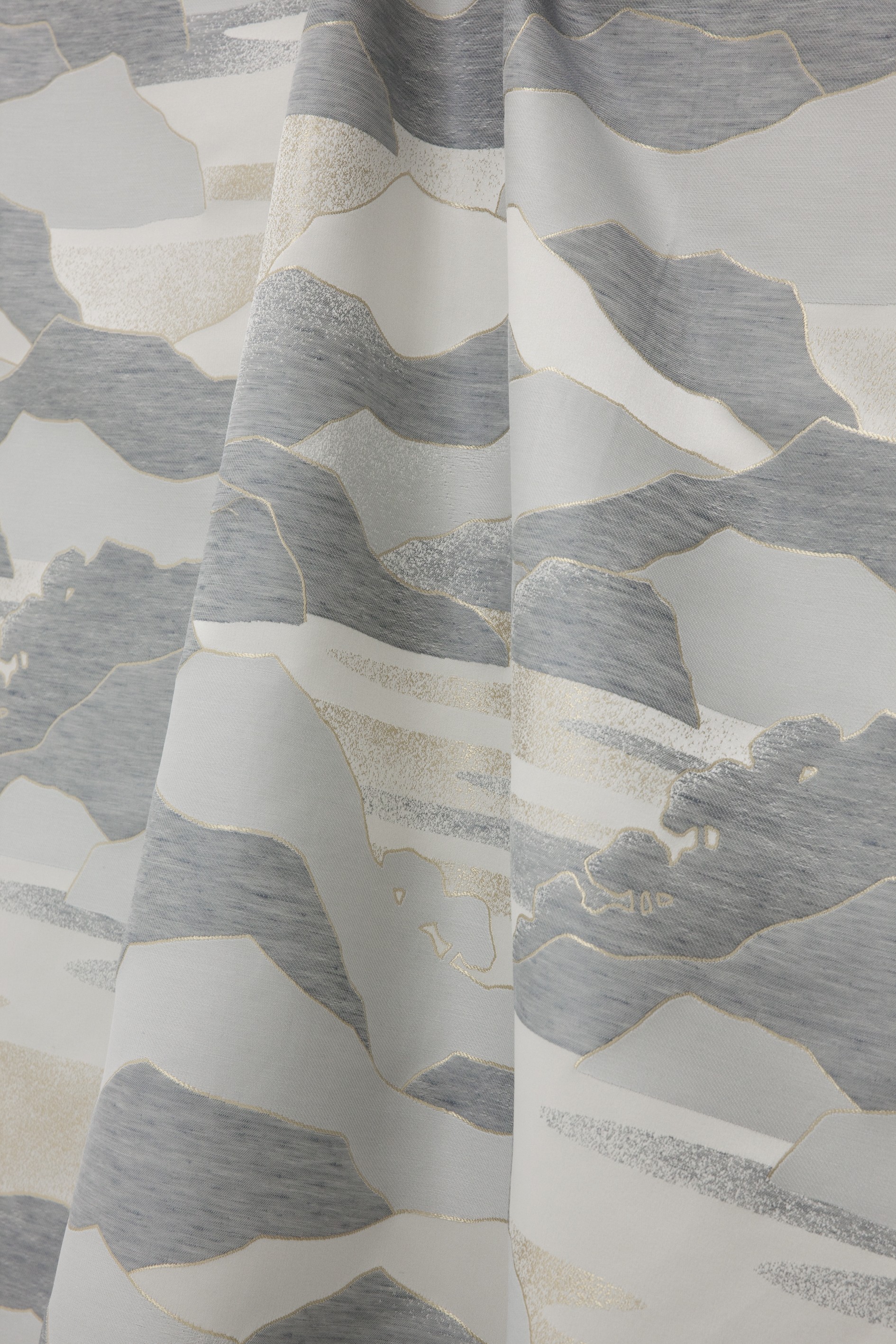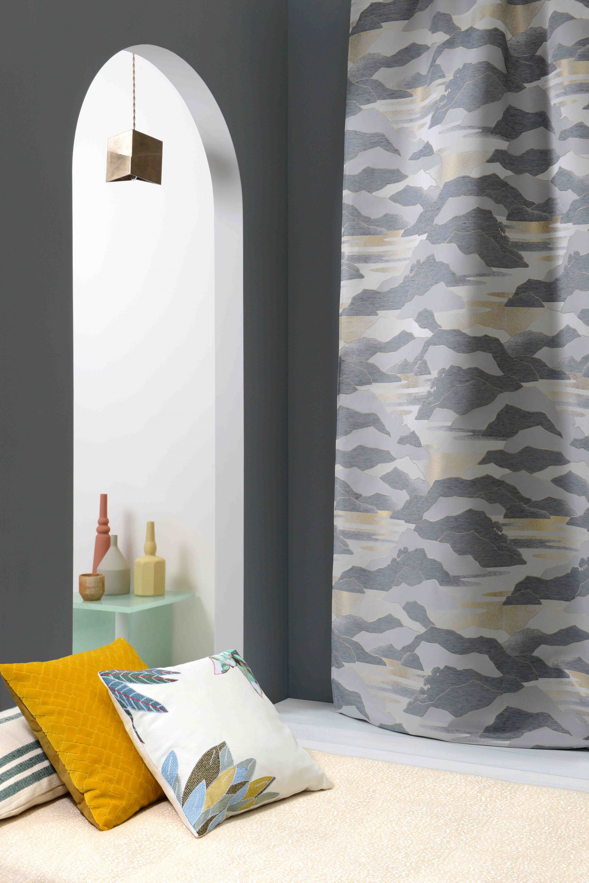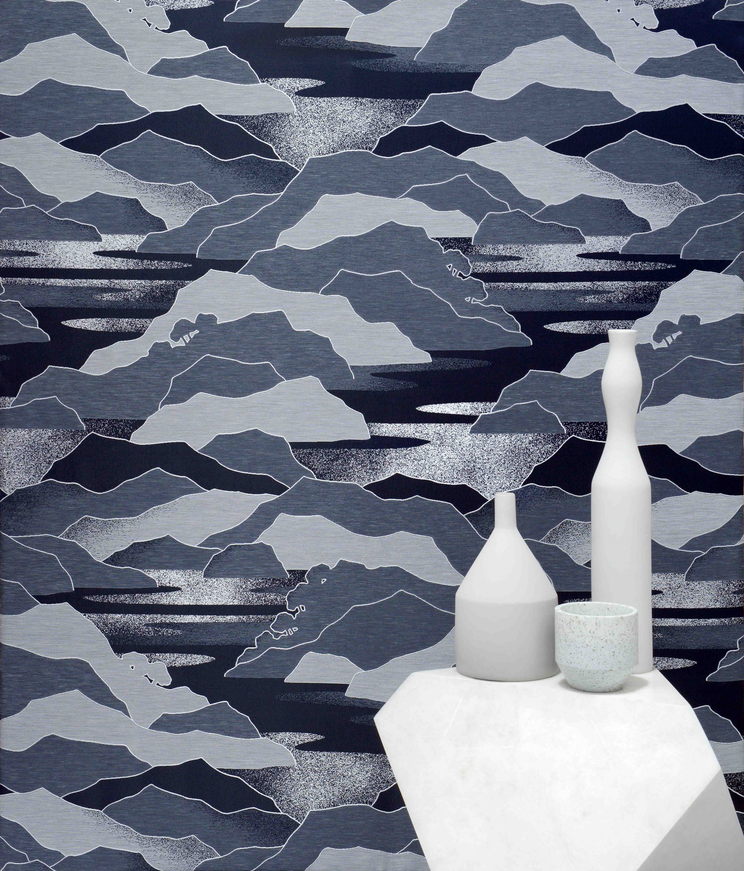Une géographie montagneuse, sauvage. Des perspectives, des flancs de falaise comme des lignes d horizon sous les rayons du soleil ou de la lune. Des vallées qui épousent des monts, suggérant des reliefs délicatement rehaussés, sertis et poudrés de lumière. Un décor qui a directement inspiré Calanques, un lampas réalisé dans nos ateliers de tissage, dans la Loire. Une chaine fine comme une soierie offre un tombé souple et élégant, tandis que les trames de lin et coton confèrent un toucher naturel à cette qualité rideau.