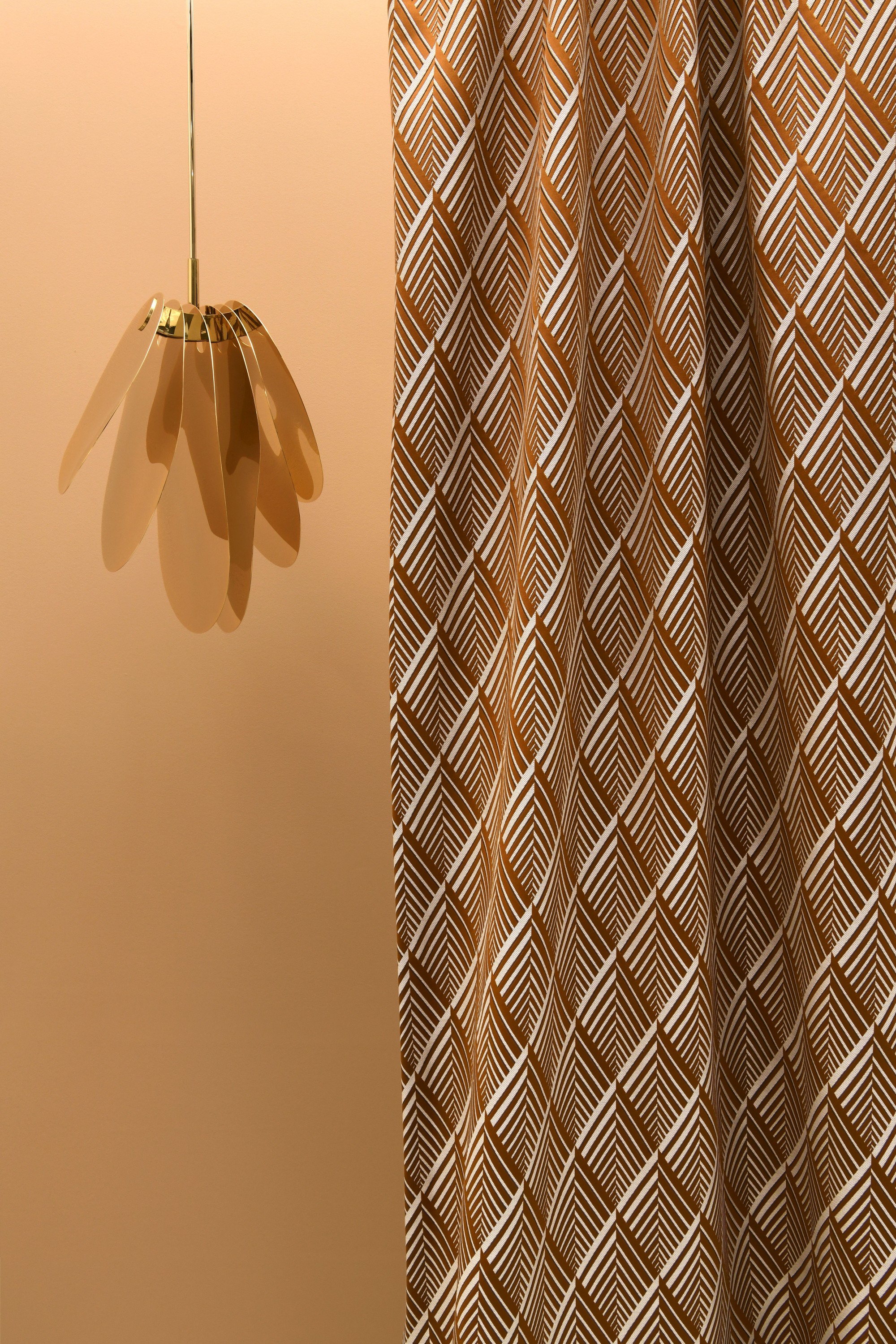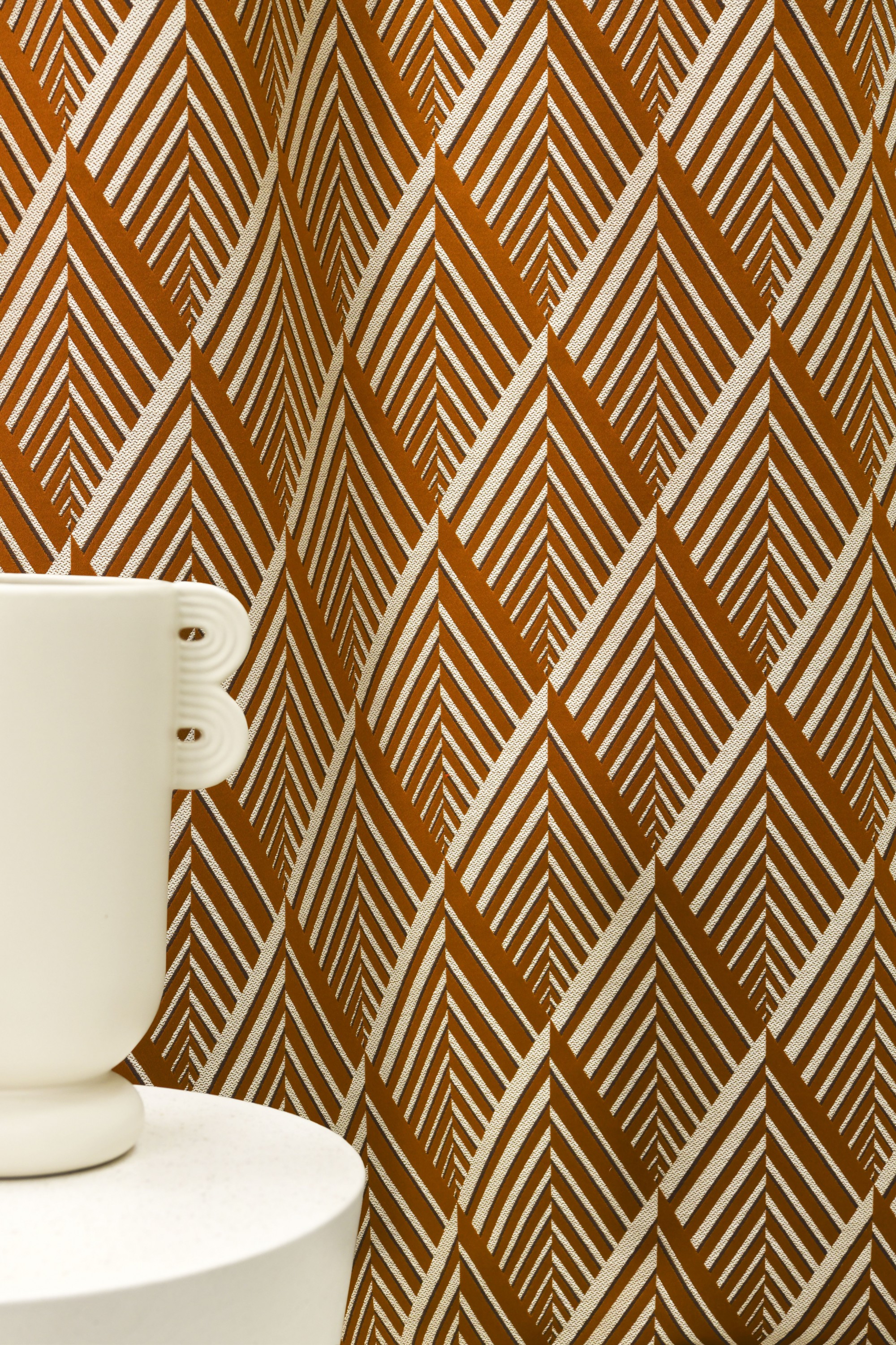 Beau géométrique composé de jeux de losanges rayés tricolores au fond légèrement satiné, qui apportent du rythme et du relief aux lignes texturées, surlignées d'un liseré plus sombre qui lui donne un effet d'ombrage. ARIANE est doté d'une belle palette de couleurs pour des propositions originales d'ambiance qui se coordonnent à HERA.
