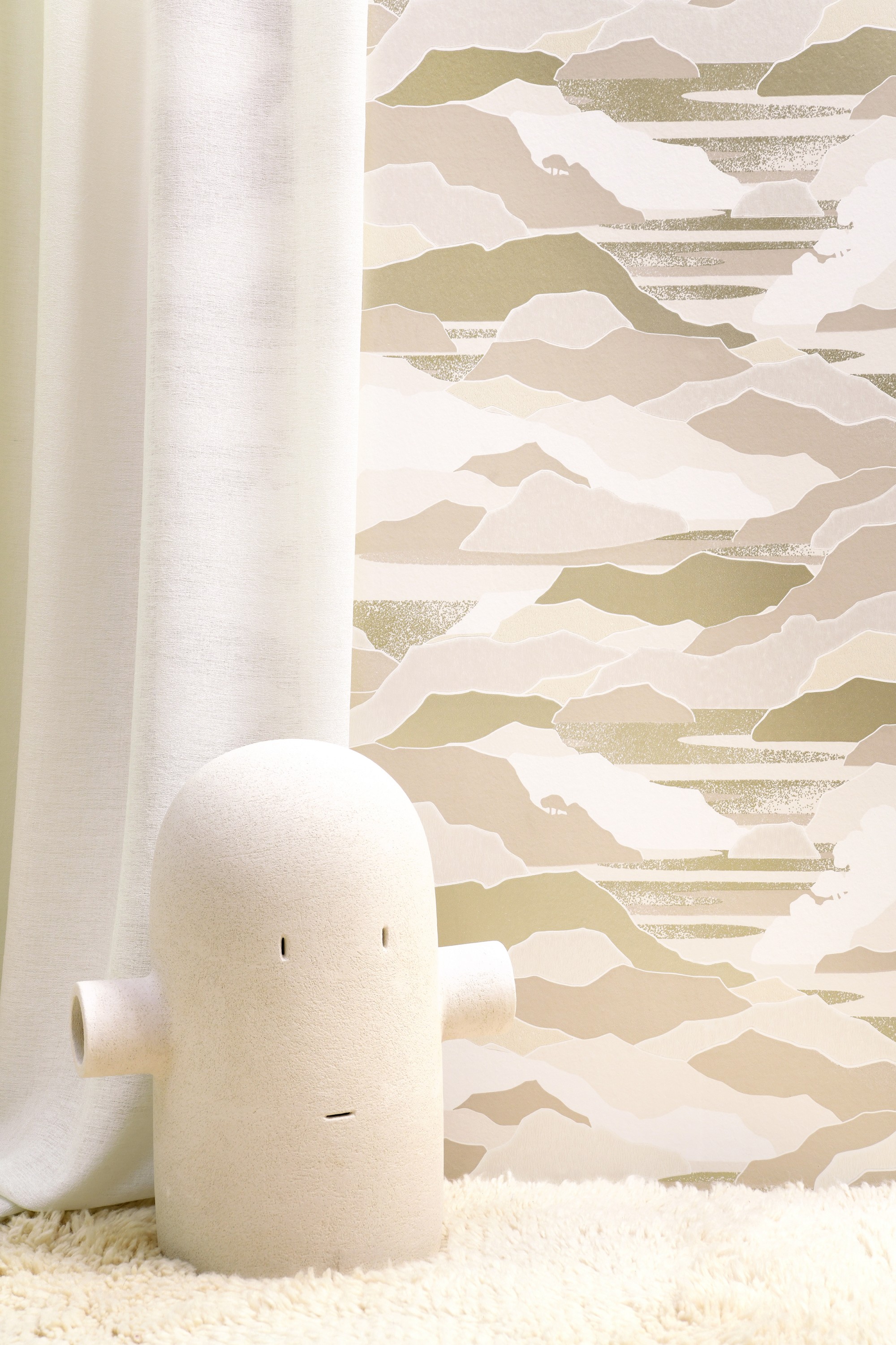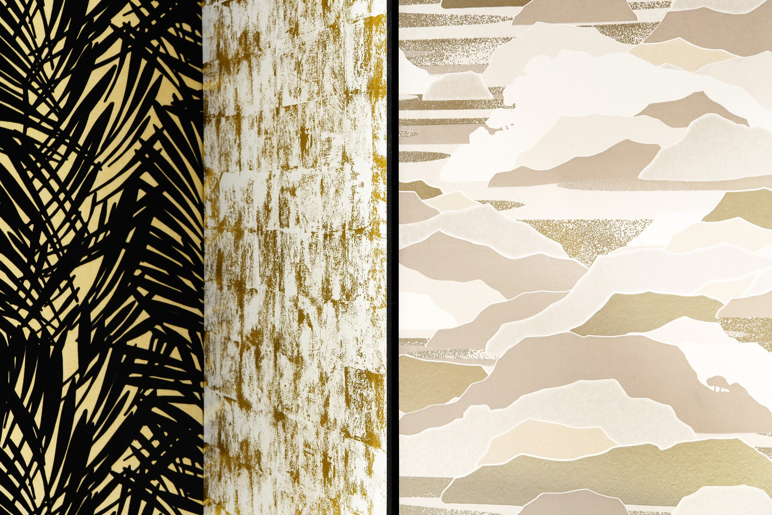 L illusion d une impression à l ancienne Un paysage aux reliefs tout en perspective, se découpe en aplats de couleurs sertis par délicat contour lumineux. Ça et là, des zones poudrées rehaussent les lignes d horizon et dont vibrer en or ou argent ce décor interprétant notre lampas Calanques (4238) de la collection Riviera