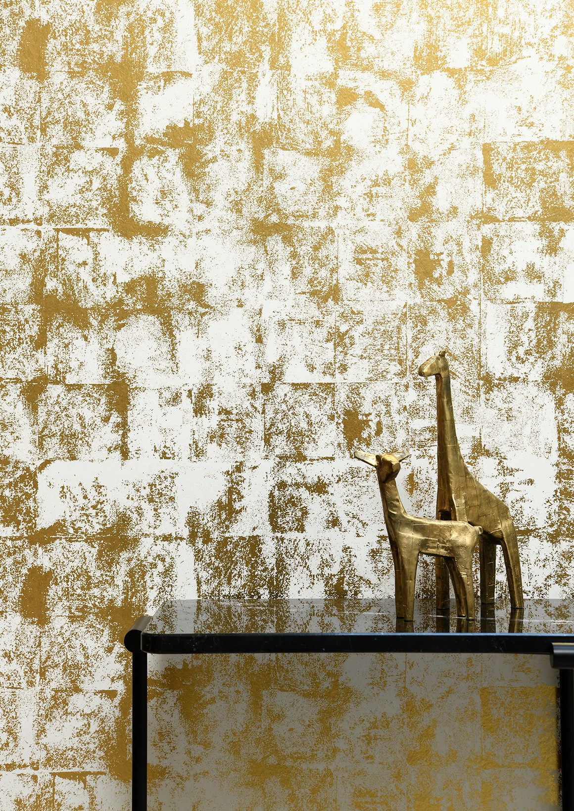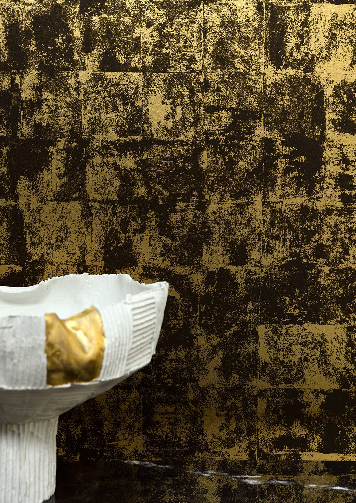 Tel un décor de feuilles de métal oxydées, patine se décline dans une géométrie de métaux lumineux, adoucie par des effets d oxydation poudrés.
