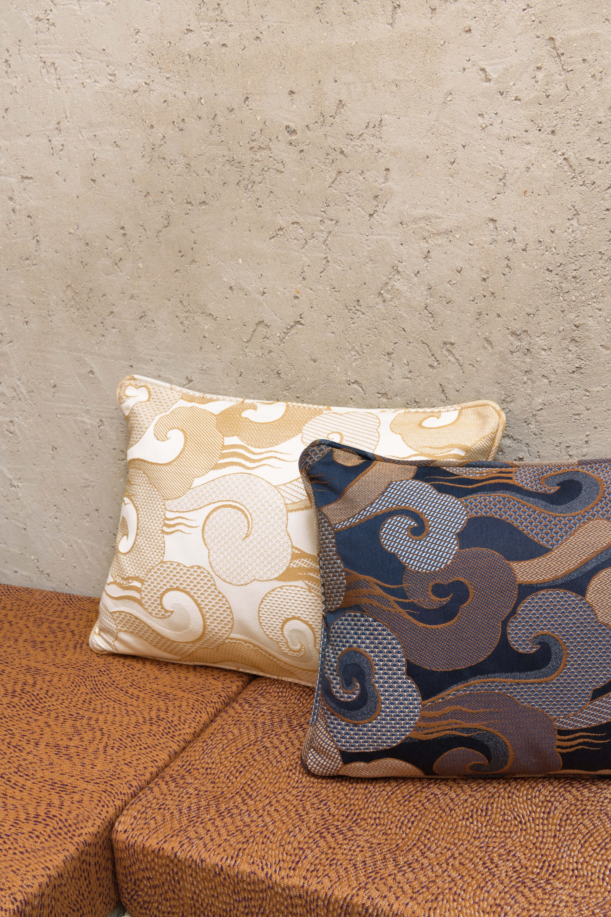 Inspiré des Rêveries, le tissu Alizé tissé à la manufacture Lelièvre met en mouvance des volutes aussi délicates que légères. Le résultat : un jacquard où chaque volute a été traitée dans une multitude de petites armures graphiques et délicates. 5 coloris : écume, sable, nuage, indigo, ambre.