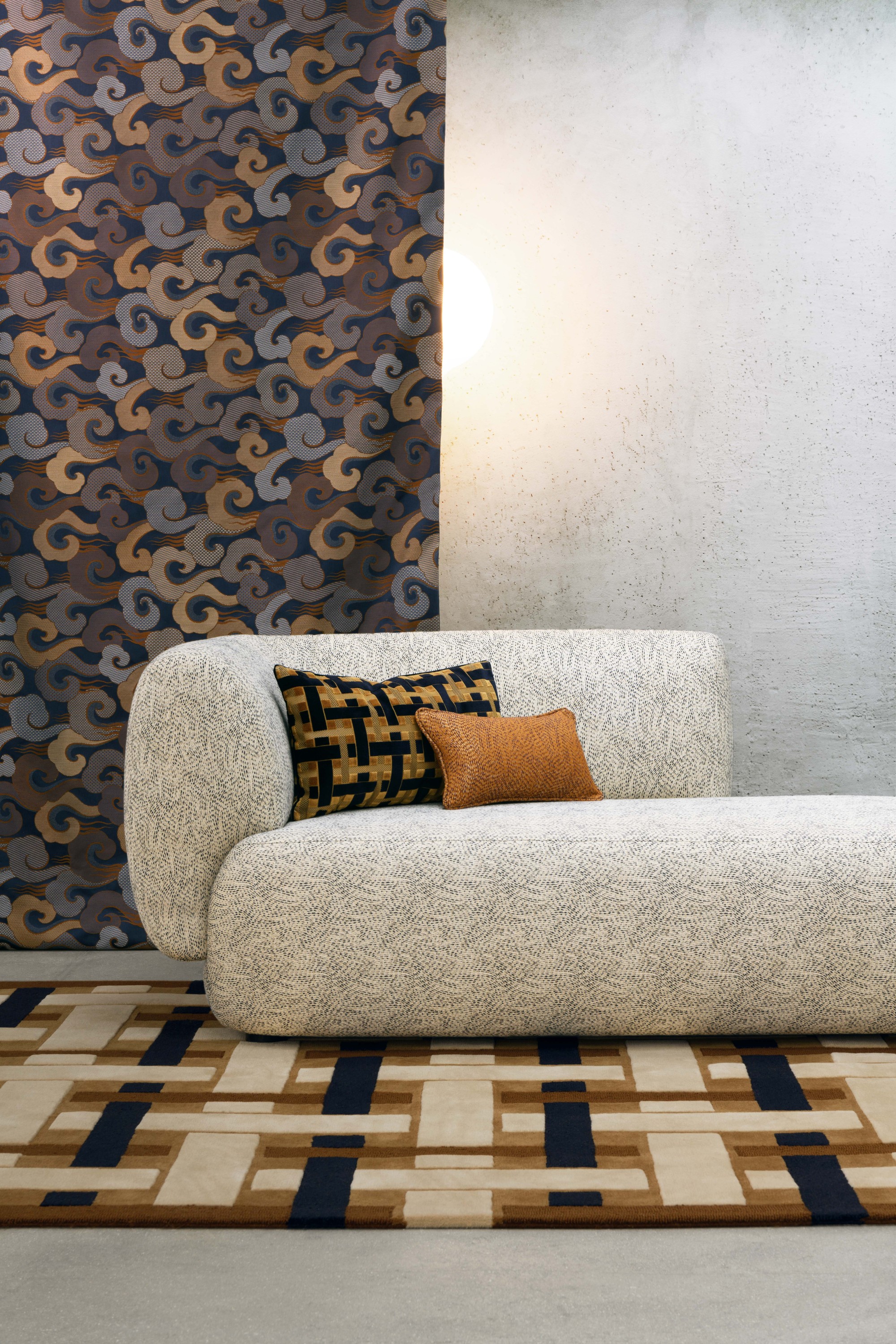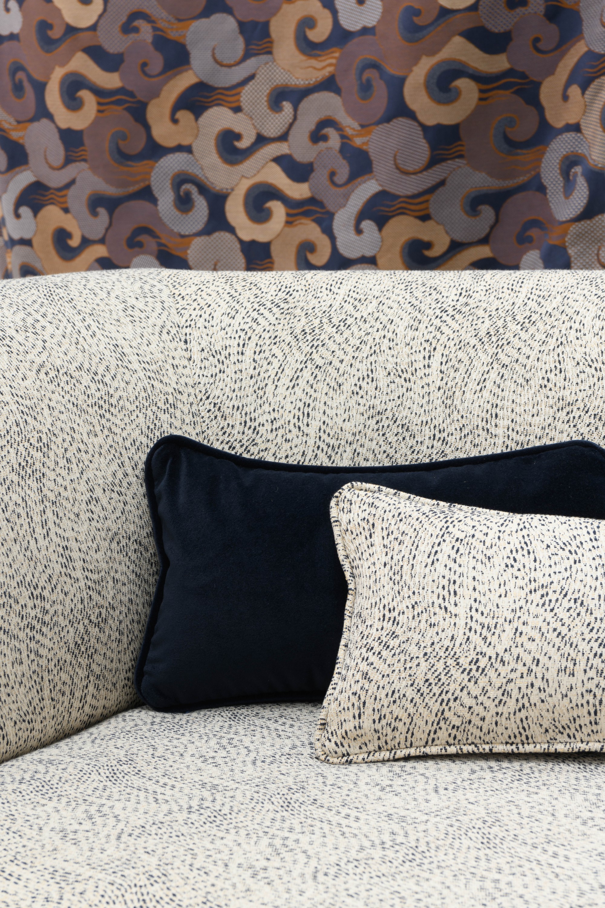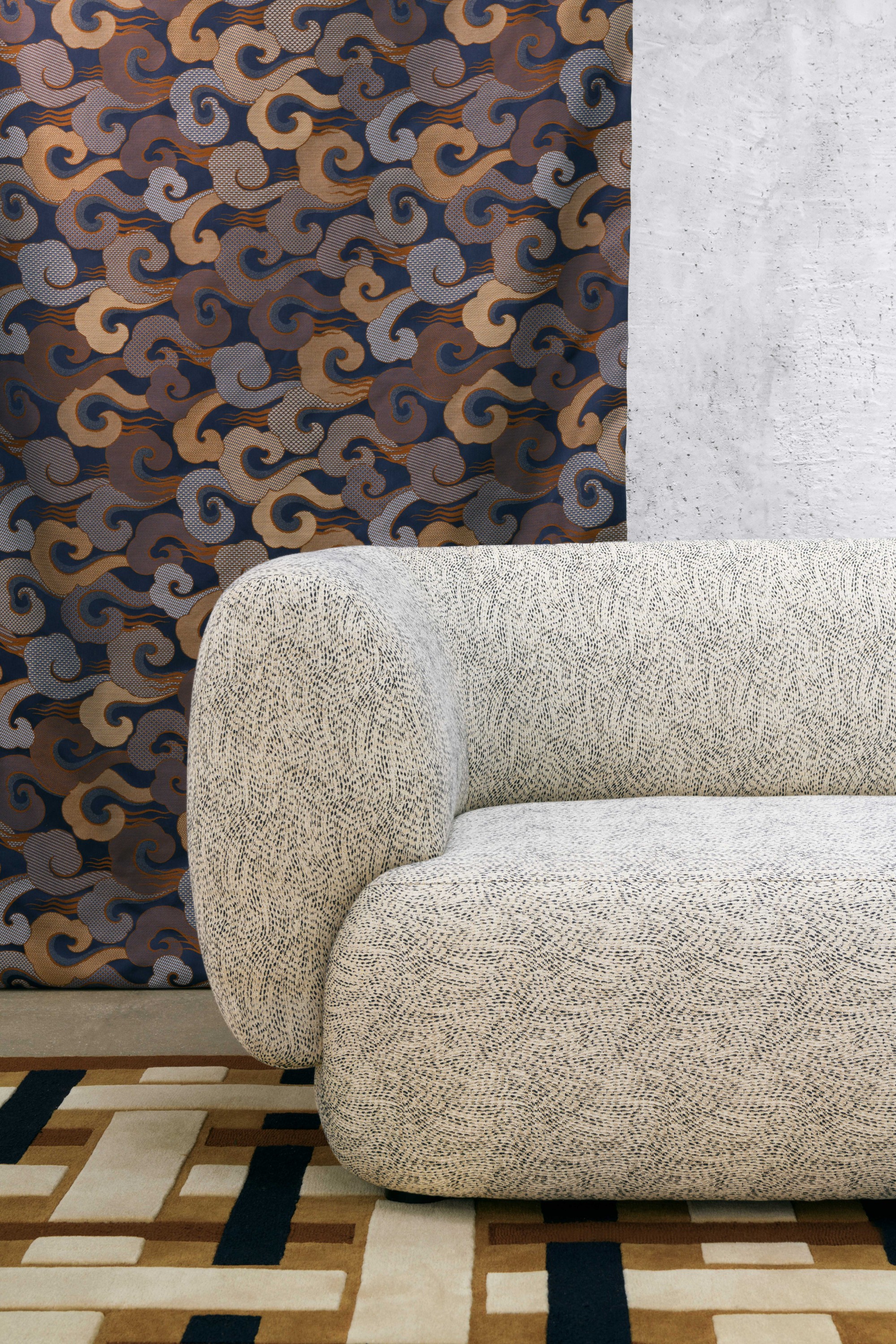 Fabriqué dans la manufacture Lelièvre, ce jacquard faux unis impressionne par sa technique avec, en trame, un fil légèrement irisé - doré, cuivré ou poudré - pour un rendu scintillant donnant l'impression d'une douce pluie.