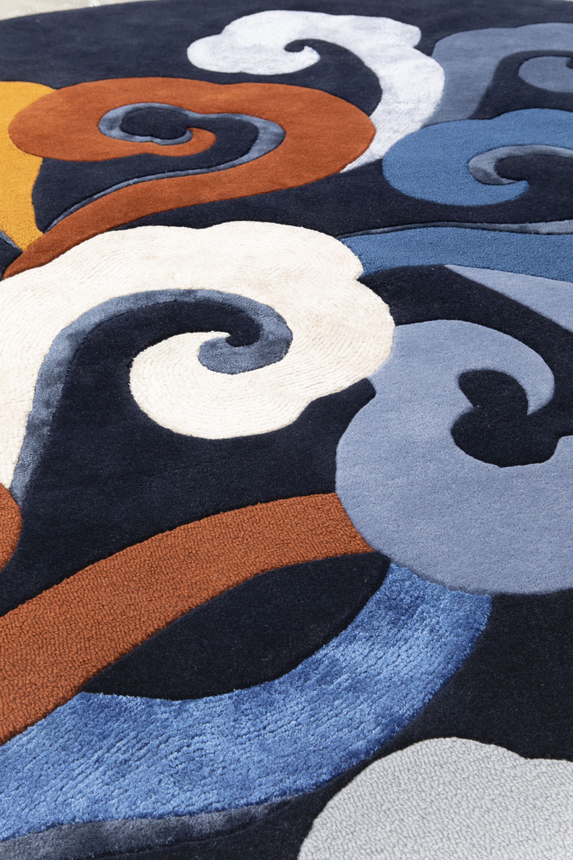 Inspiré du tissu ALIZÉ, ce tapis ELLIPSE présente des volutes aussi délicates que légères. Cette belle forme ronde de tapis nous livre un bouquet de volutes toutes différentes en interprétation et en coloration. Composé de laine de Nouvelle-Zélance, ce tapis est tufté main, coupé, bouclé et ciselé.