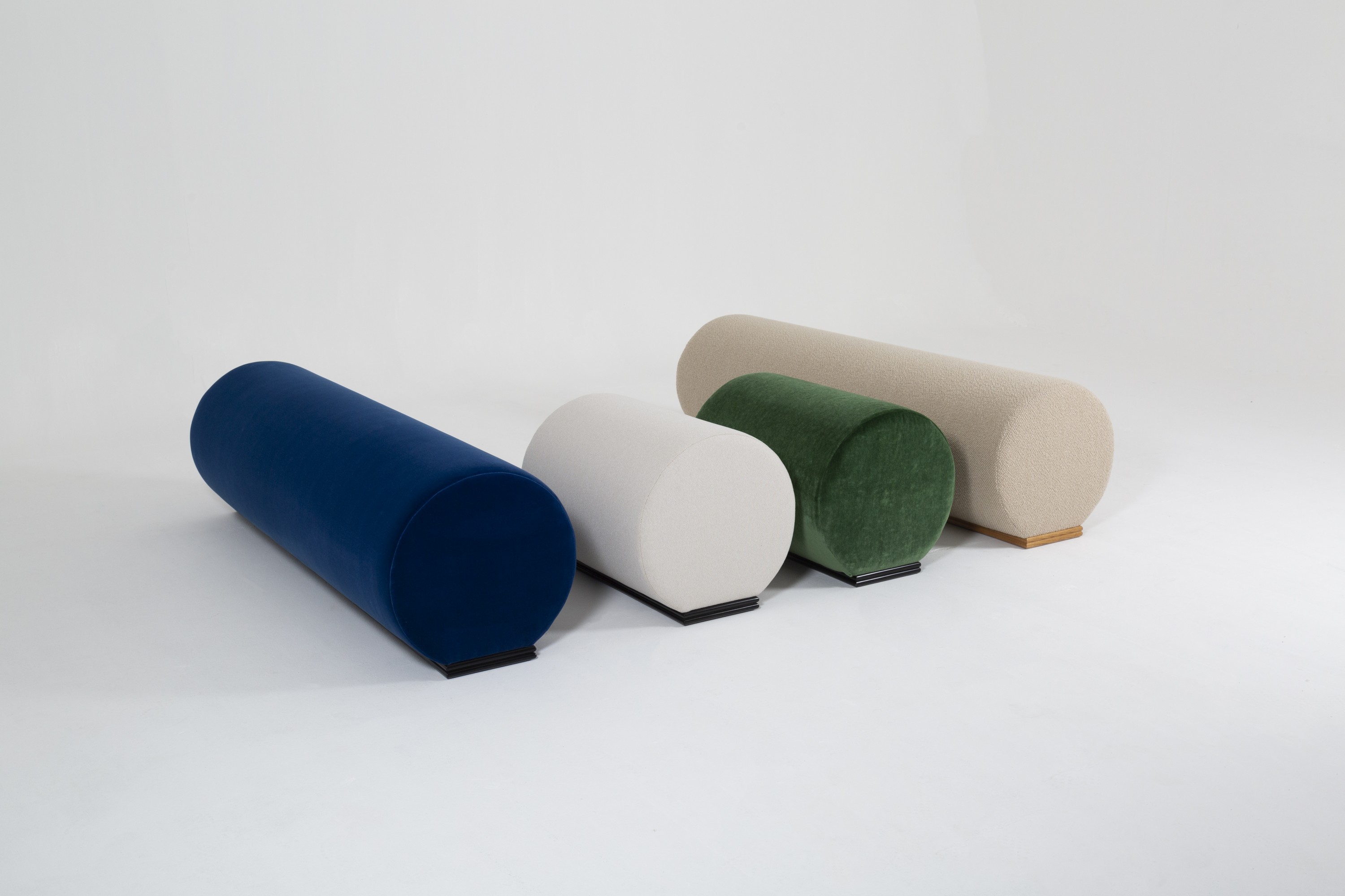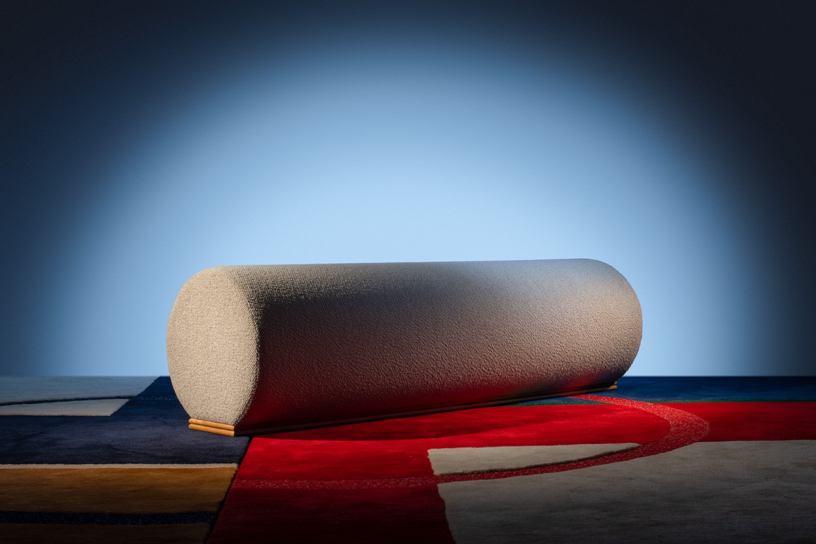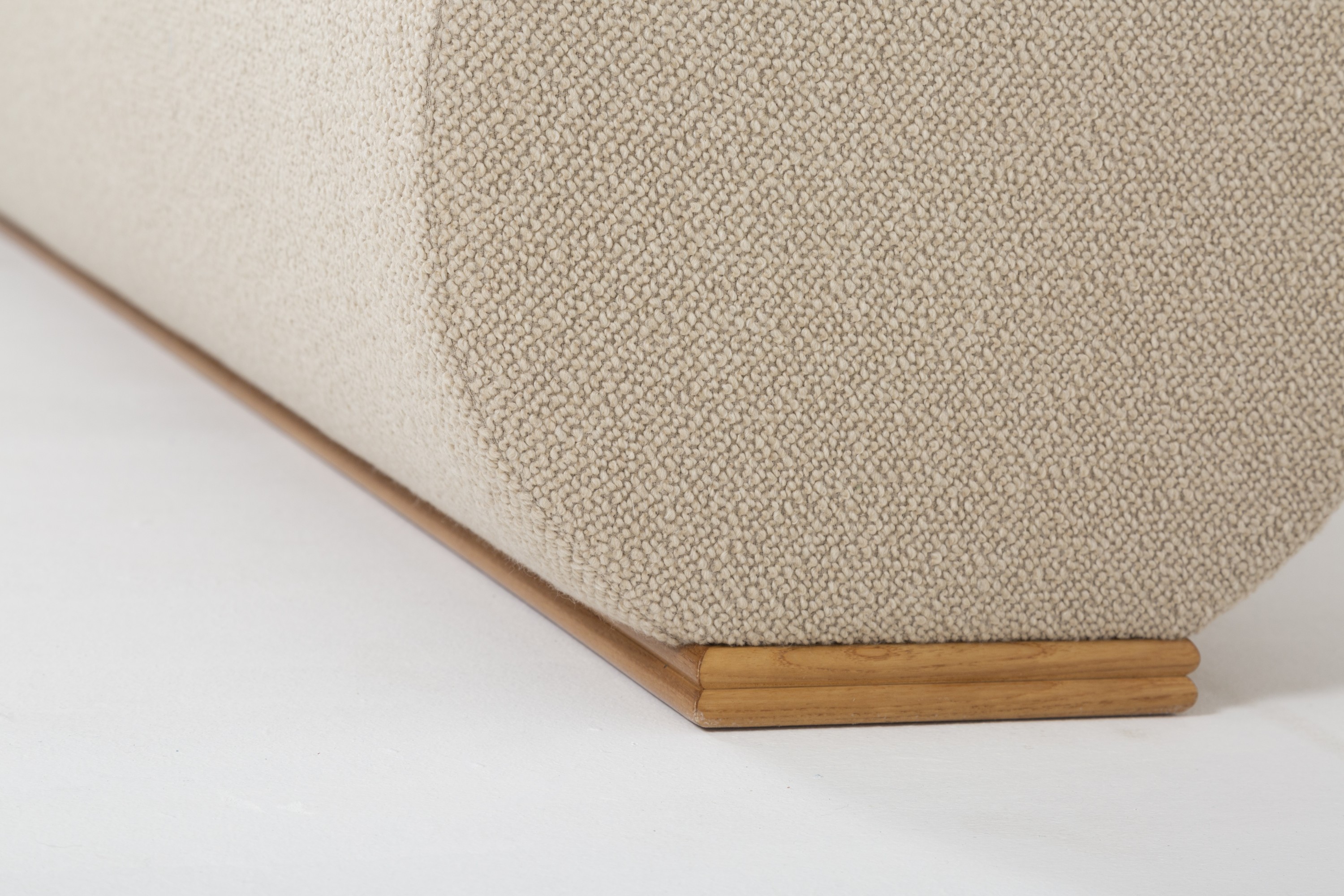 Grand canapé en frêne. Mousse CH MR répondant aux normes non feu AM18. Disponible en bois laqué noir et bois miellé. | Poids : 18 kg | Tissus : Sherpas ou Cosmos | Design : José Lévy