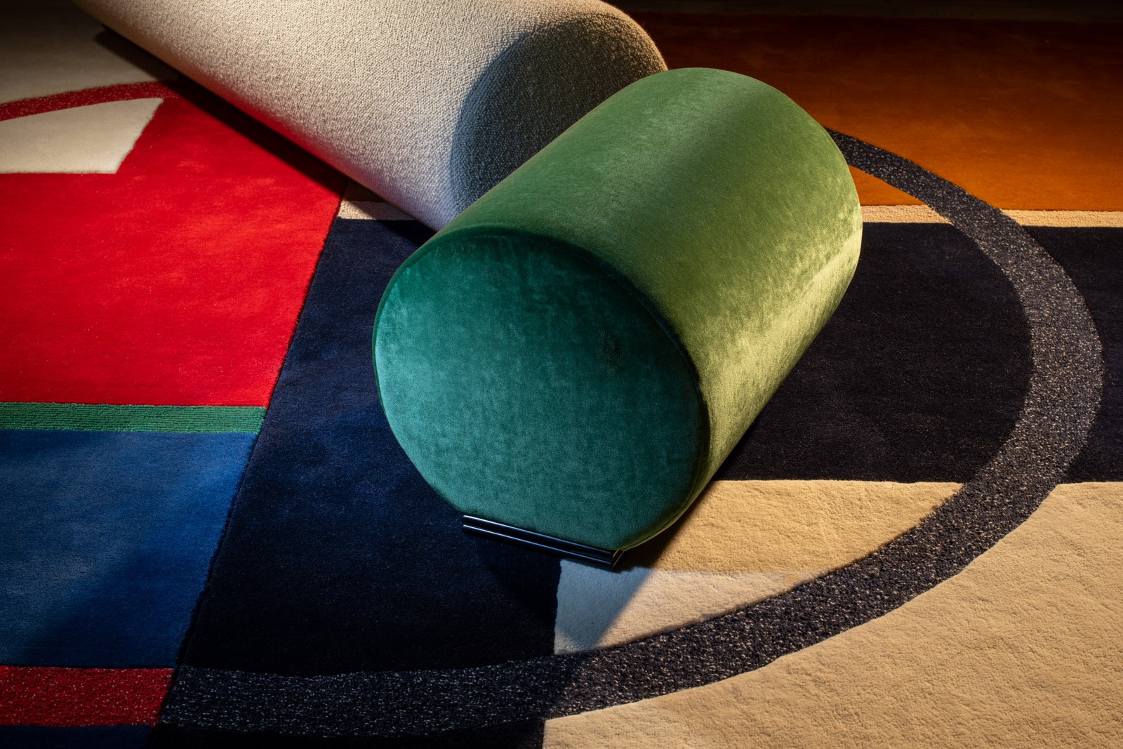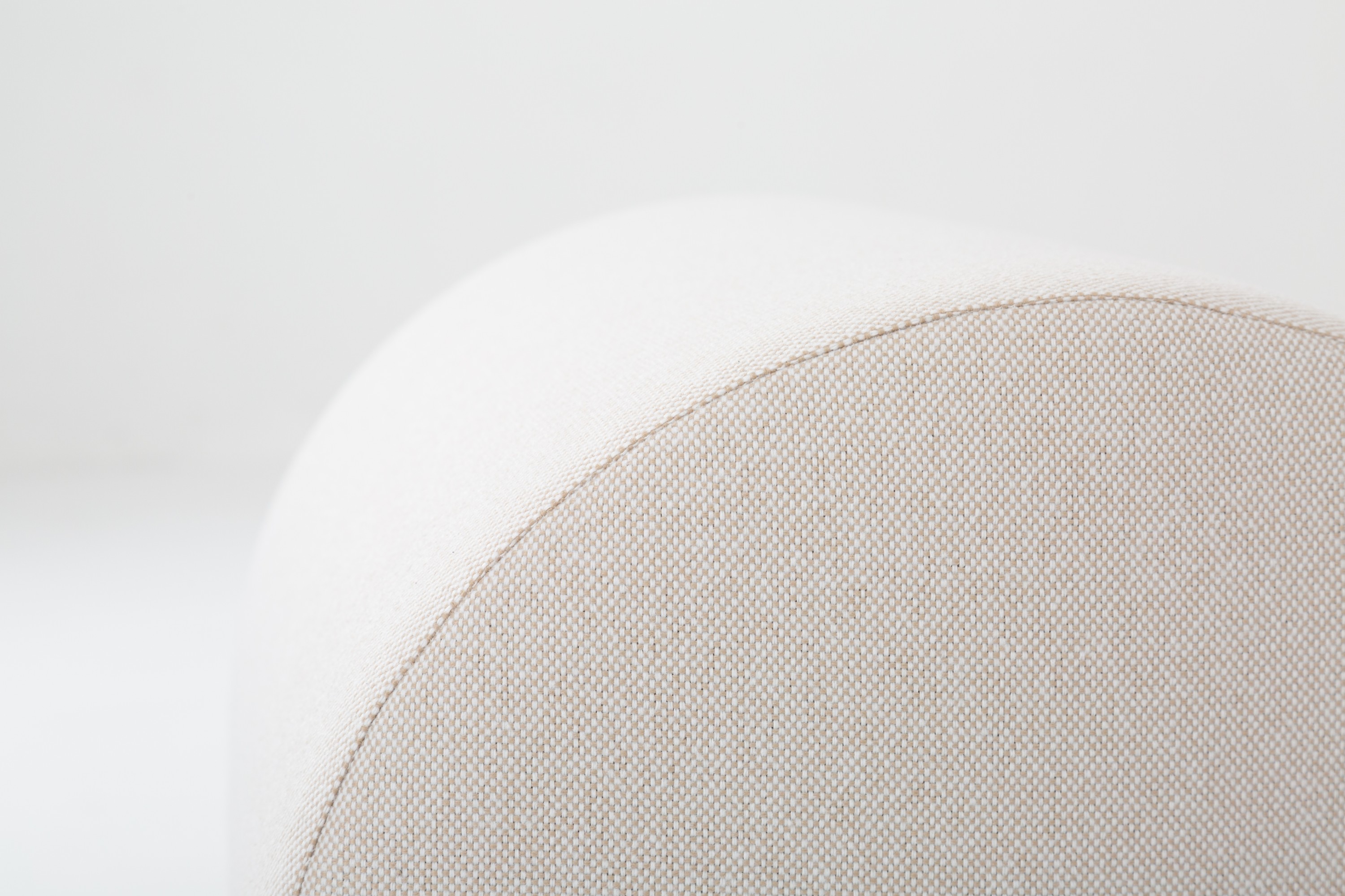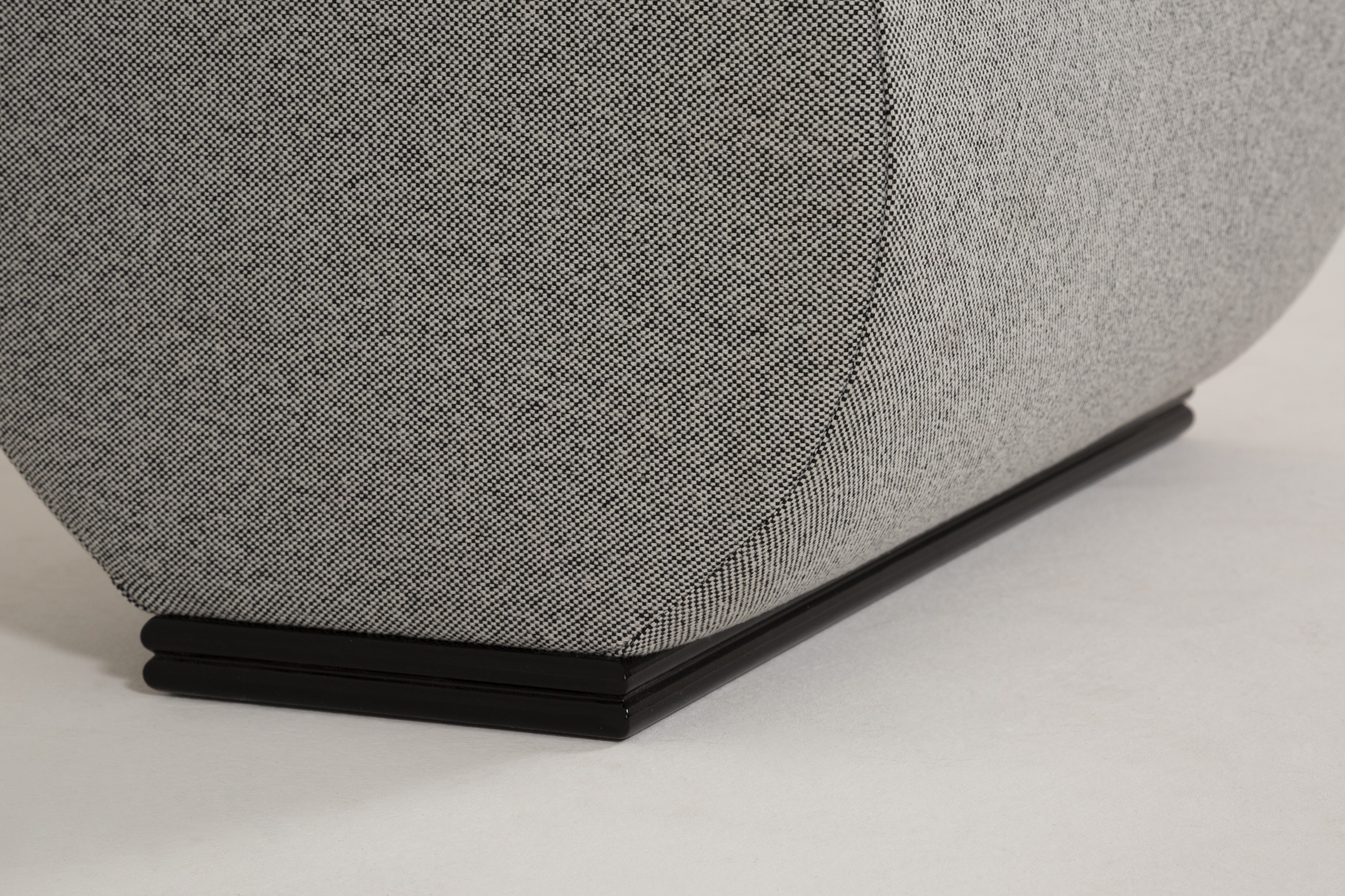 Petit canapé en frêne. Mousse CH MR répondant aux normes non feu AM18. Disponible en bois laqué noir et bois miellé. | Poids : 12 kg | Tissus : Cosmos, Lana ou Sherpas | Design : José Lévy