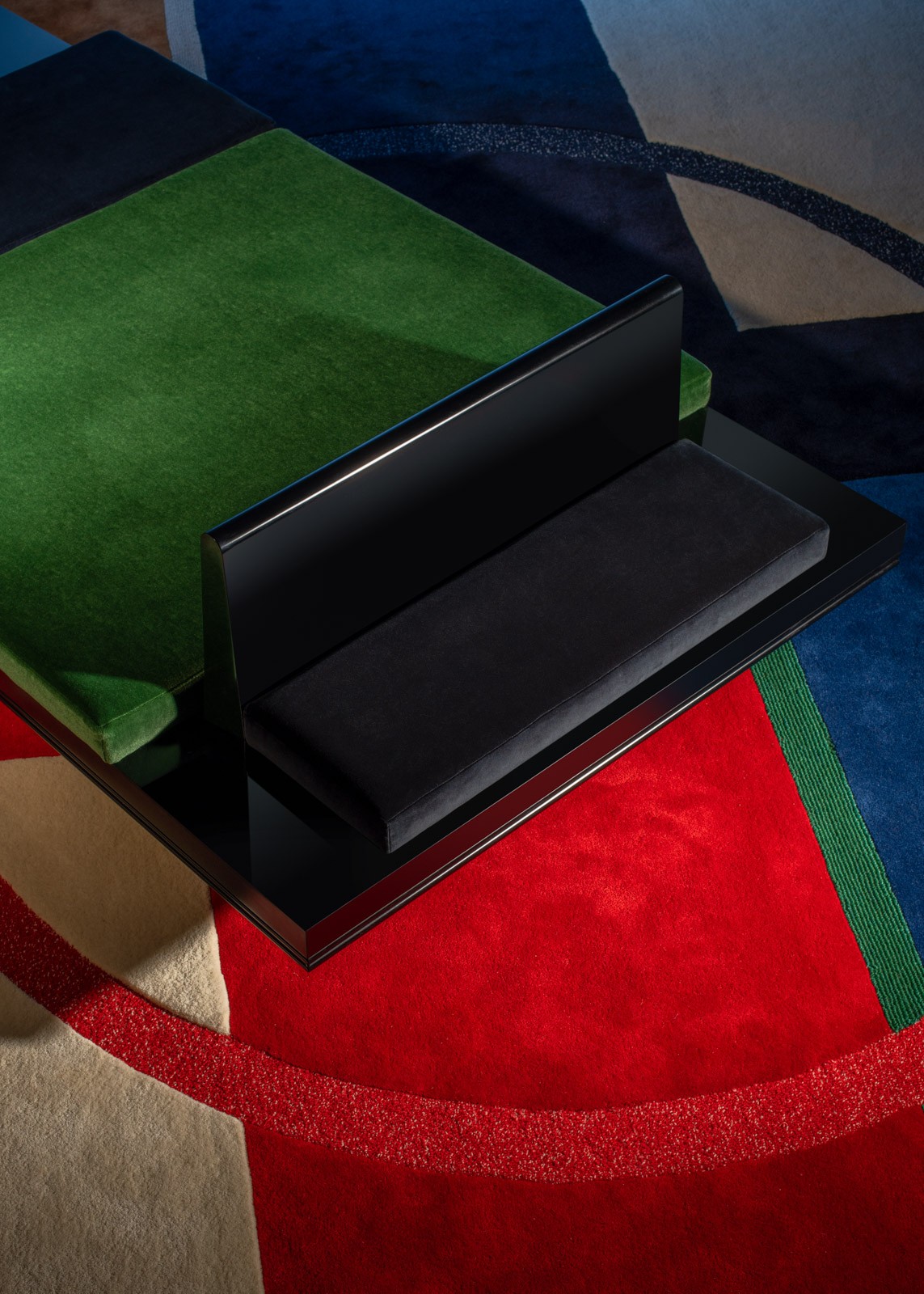 Faisant écho à des lieux emblématiques parisiens, José Levy a baptisé les deux tapis de la collection JEUX DE SALON Square Louvois 1& 2, là où se situait l'Opéra de Paris entre 1794 et 1820. Les traits et dessins dans les grands aplats de couleurs évoquent une géométrie inspirée de l'univers du jeu et du sport. Ce tapis est tufté main et composé exclusivement de laine de Nouvelle-Zélande.