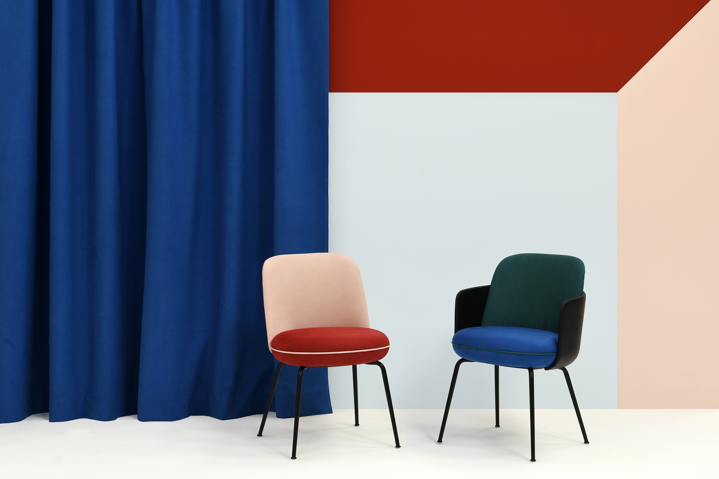 This reversible plain microfibre is distinctively soft and supple. The faux suede effect of this luxurious fabric is available in 18 pastel shades for softly romantic seating or wallcoverings and it drapes perfectly. Its dappled matte effect lends a sensual, tactile feel. This double-sided fabric can be used as separator screens to bring structure to a space.
